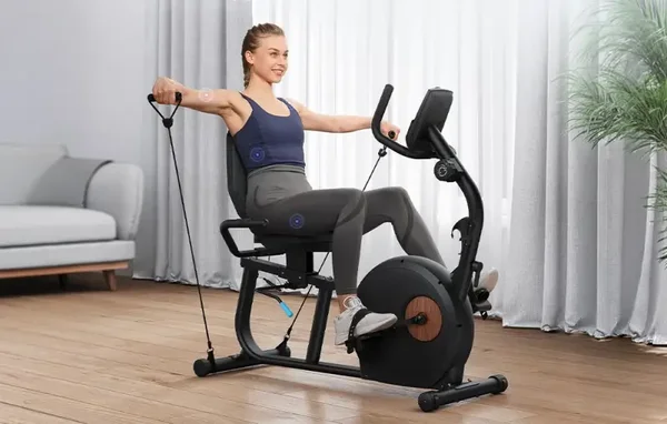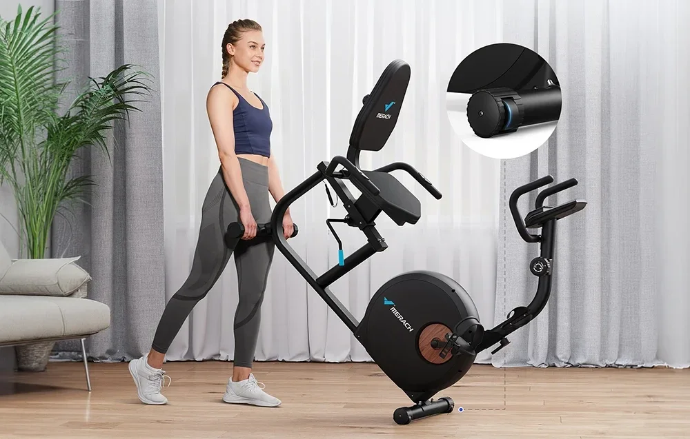 Le Merach S23B1 est un vélo d’exercice semi-couché (recumbent) conçu pour des séances de cardio confortables, silencieuses et efficaces à domicile. Grâce à son système de résistance magnétique, son siège ergonomique avec dossier et sa connectivité Bluetooth, il convient aussi bien aux débutants qu’aux utilisateurs réguliers ou en rééducation.