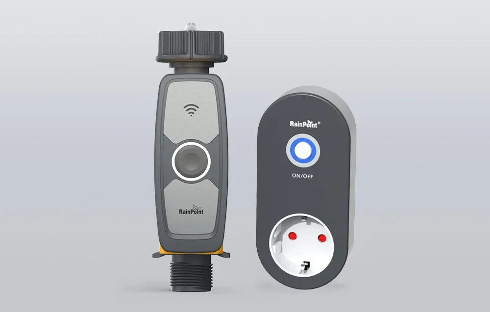 Le système se compose d’un contrôleur d’arrosage 1 zone et d’un hub Wi-Fi qui assure la communication entre votre réseau internet et le programmateur. Le hub peut gérer jusqu’à 4 minuteries RainPoint, ce qui permet d’étendre facilement votre système d’irrigation si nécessaire.